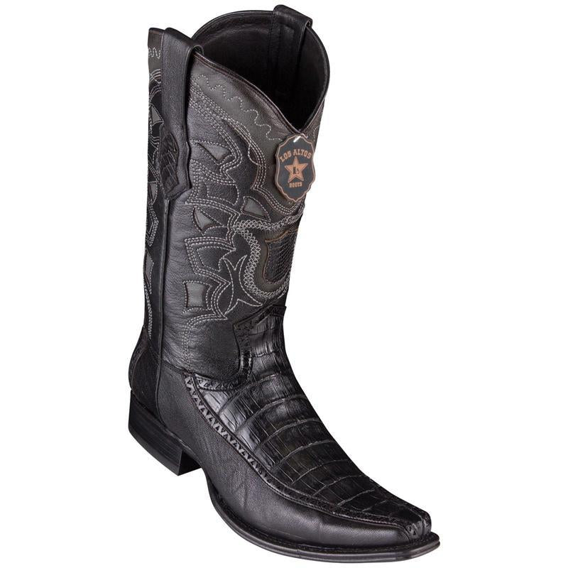 Los Altos Genuine Caiman Belly Narrow Square Toe Boot with Inlay Trim in Black