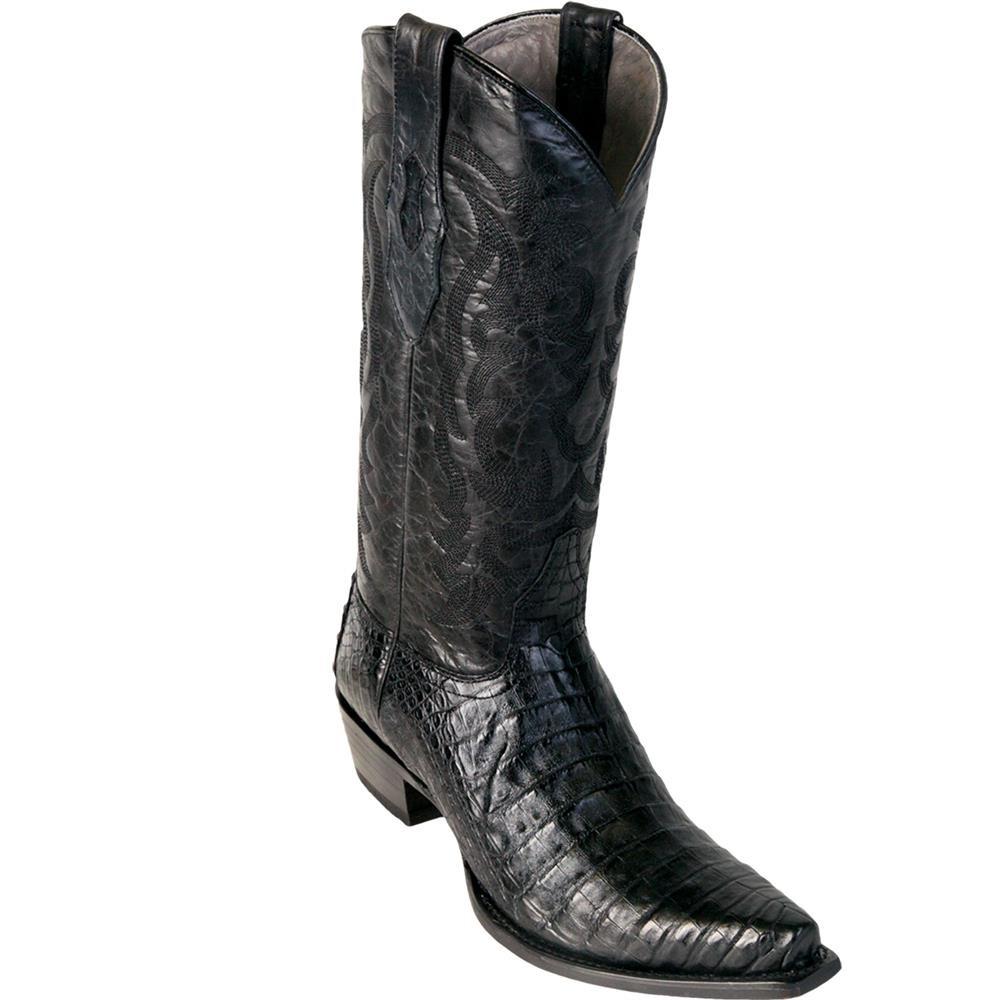 Los Altos Genuine Caiman Belly Snip Toe Boot in Black