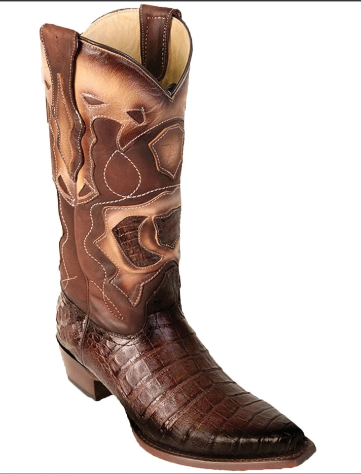 Los Altos Genuine Caiman Belly Snip Toe Boot in Burnished Brown