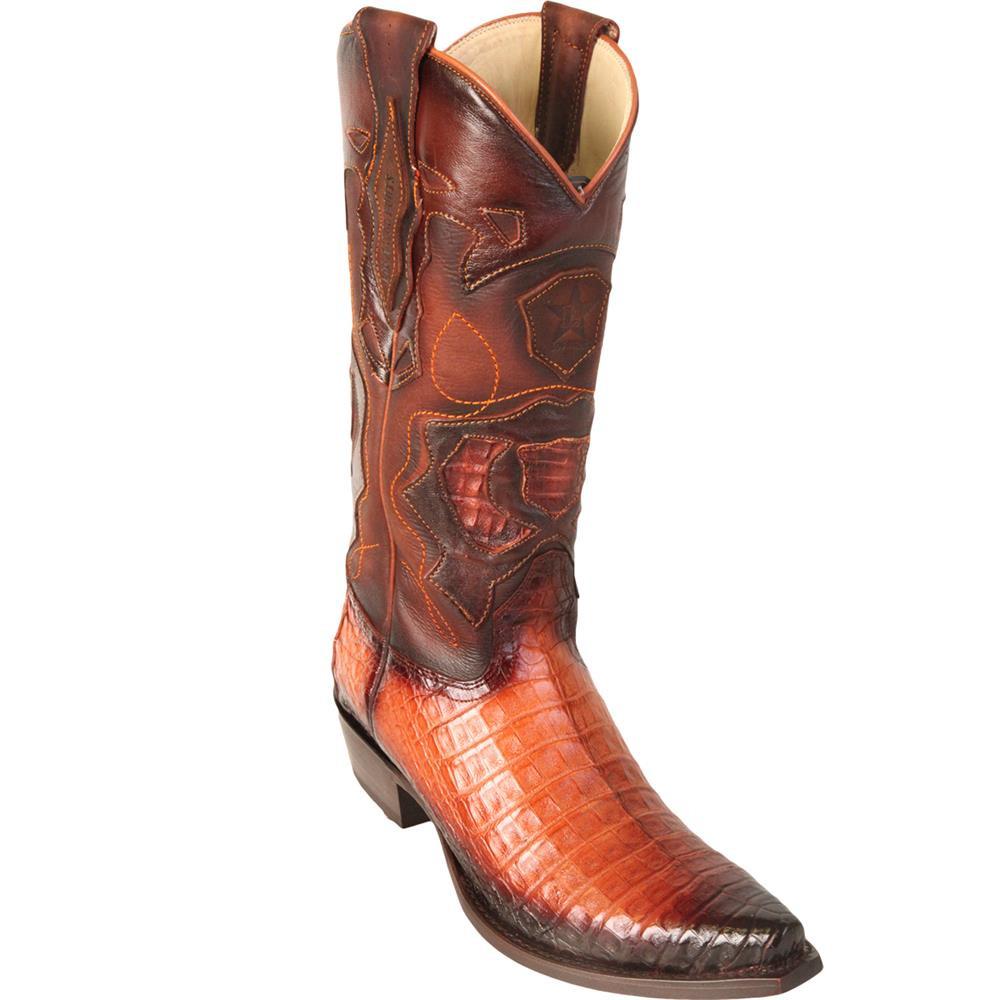 Los Altos Genuine Caiman Belly Snip Toe Boot in Burnished Cognac