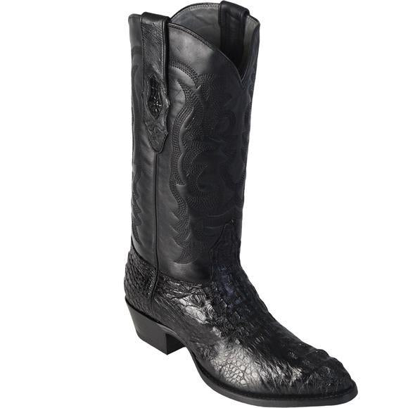 Los Altos Genuine Caiman Hornback Semi Oval Boot in Black