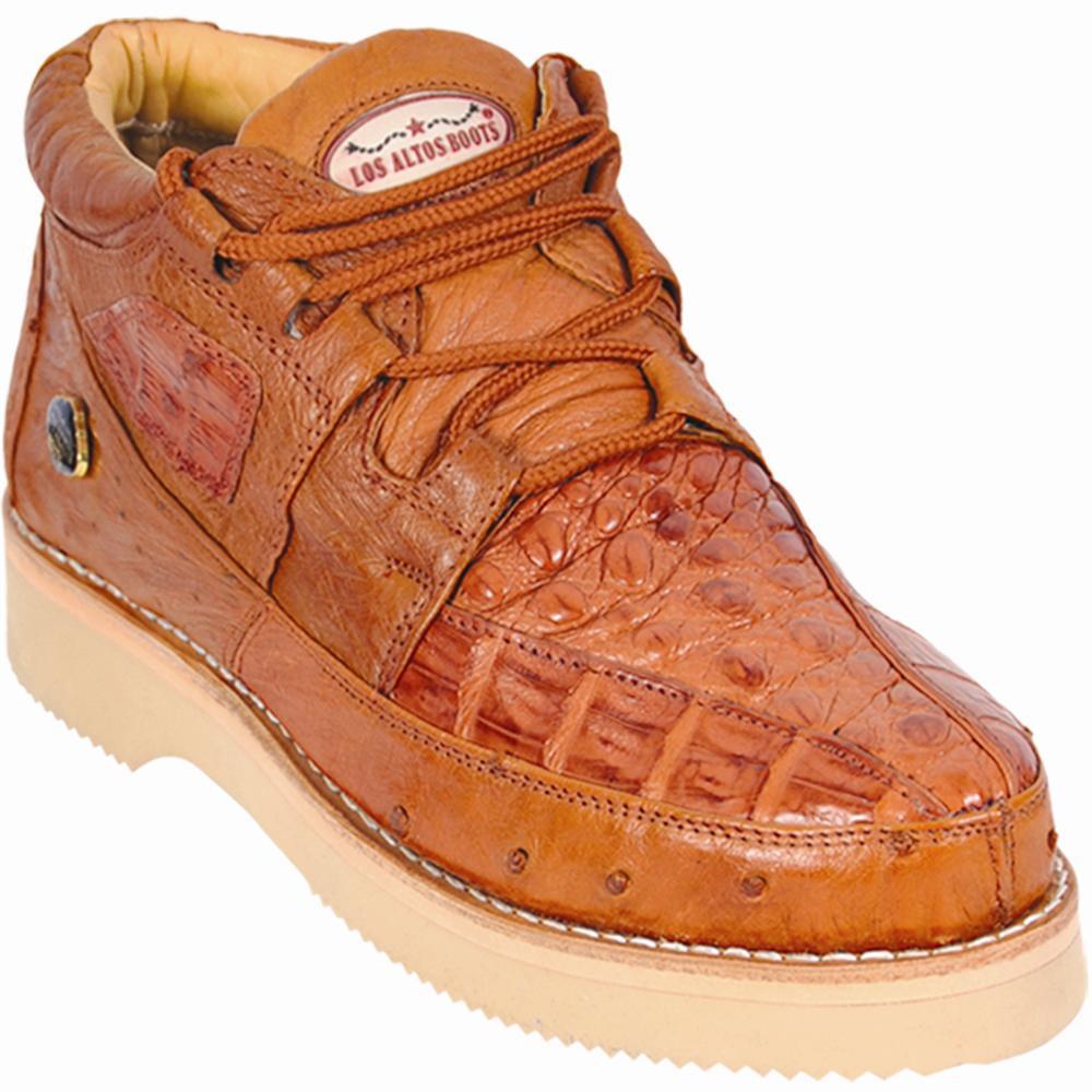 Los Altos Genuine Caiman with Ostrich Casual Shoe in Cognac