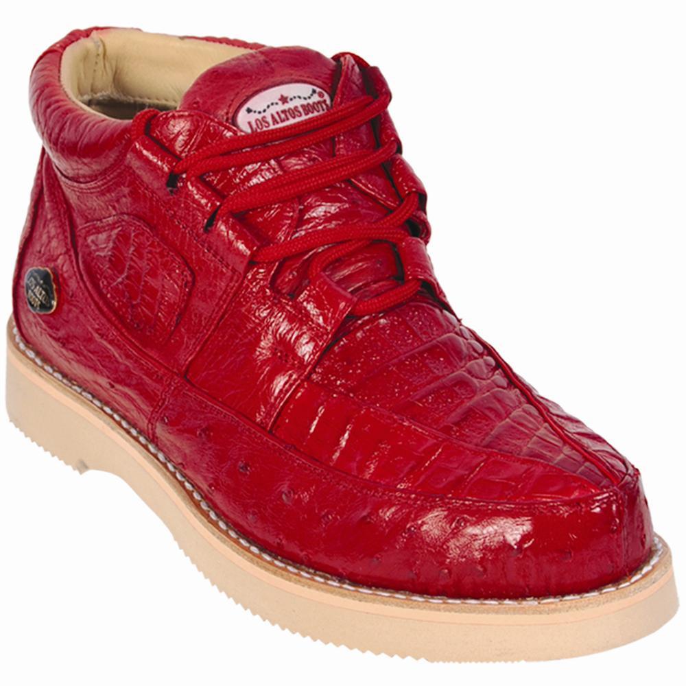 Los Altos Genuine Caiman with Ostrich Casual Shoe in Red