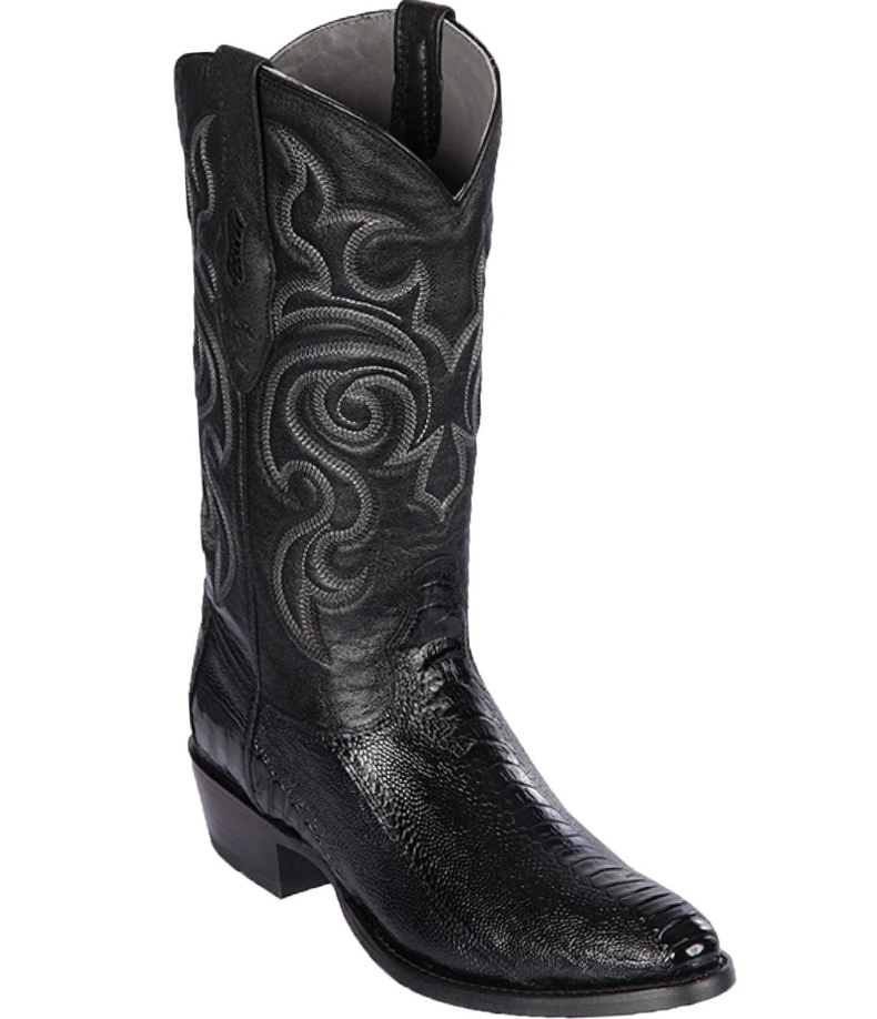 Los Altos Genuine Ostrich Leg Semi Oval Boot in Black