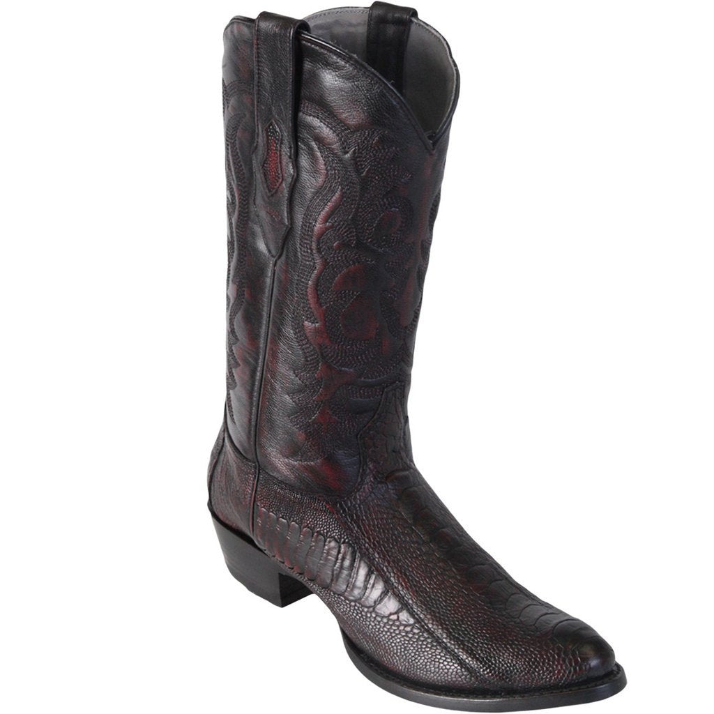 Los Altos Genuine Ostrich Leg Semi Oval Boot in Black Cherry