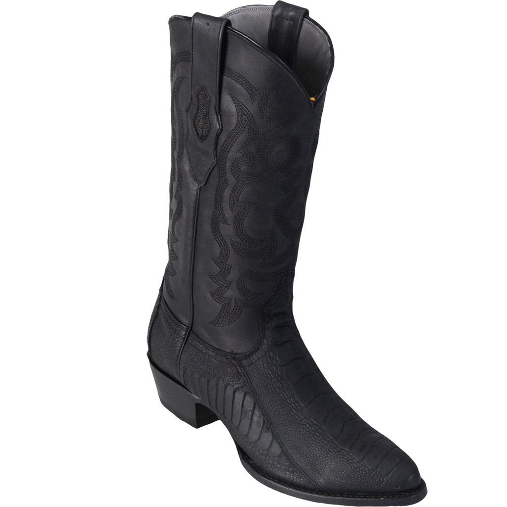 Los Altos Genuine Ostrich Leg Semi Oval Boot in Oiled Black