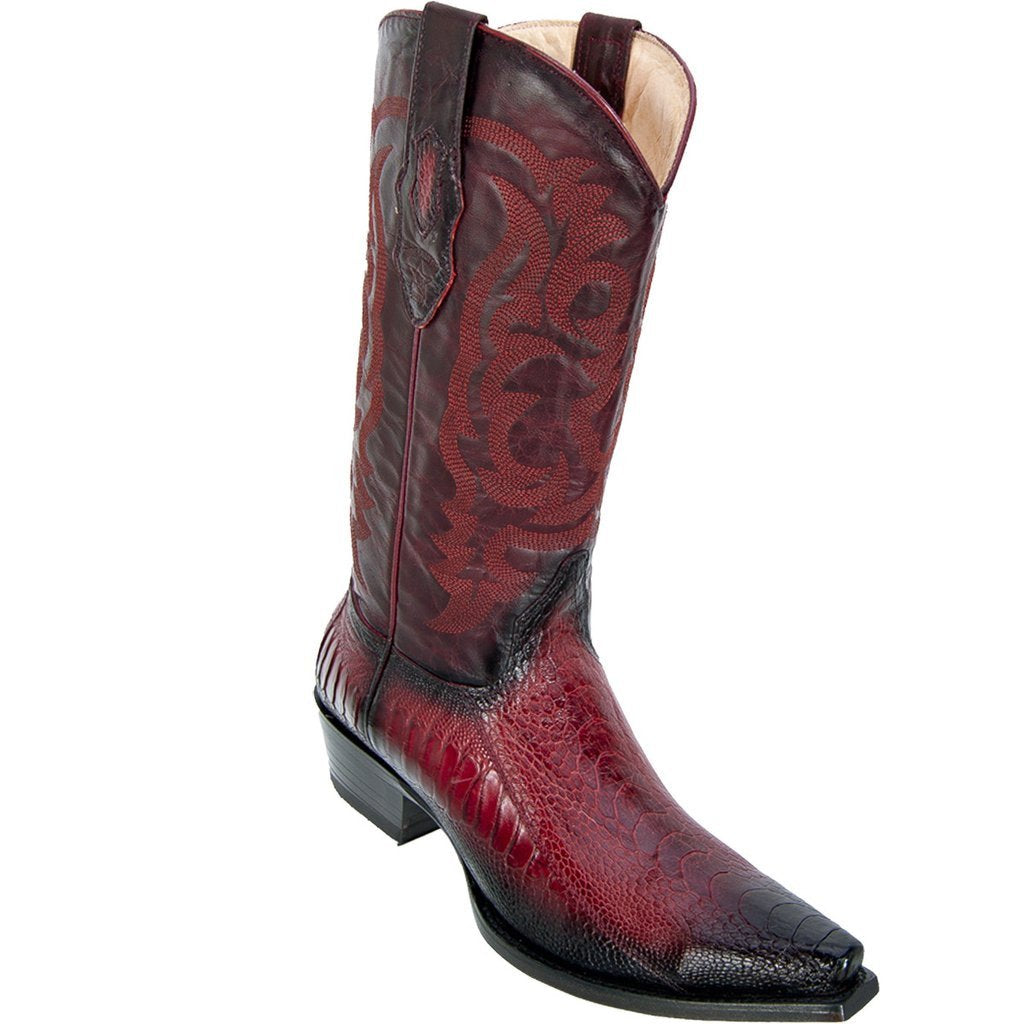 Los Altos Genuine Ostrich Leg Snip Toe Boot in Faded Burgundy