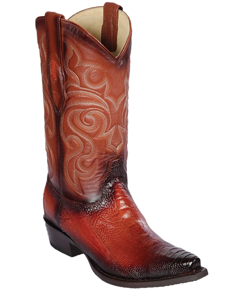 Los Altos Genuine Ostrich Leg Snip Toe Boot in Burnished Cognac