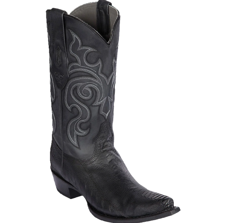 Los Altos Genuine Ostrich Leg Snip Toe Boot in Oiled Black