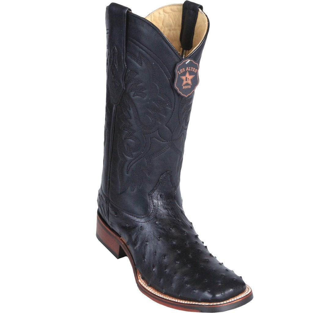 Los Altos Genuine Ostrich Wide Square Toe Boot with a Double Sole in Black