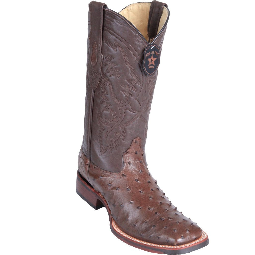 Los Altos Genuine Ostrich Wide Square Toe Boot with a Double Sole in Brown