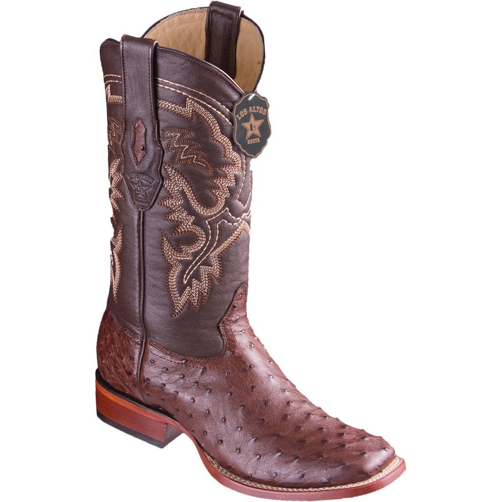 Los Altos Genuine Ostrich Wide Square Toe Boot in Tabacco