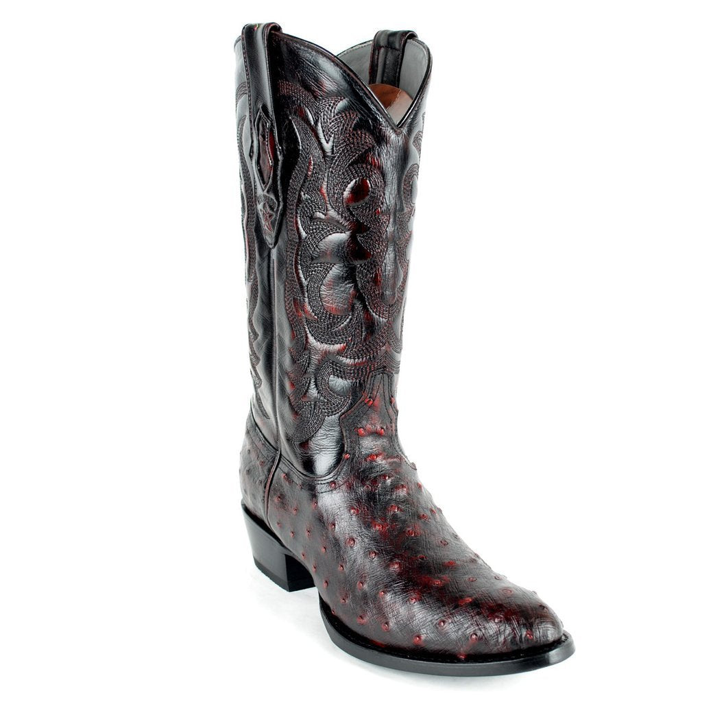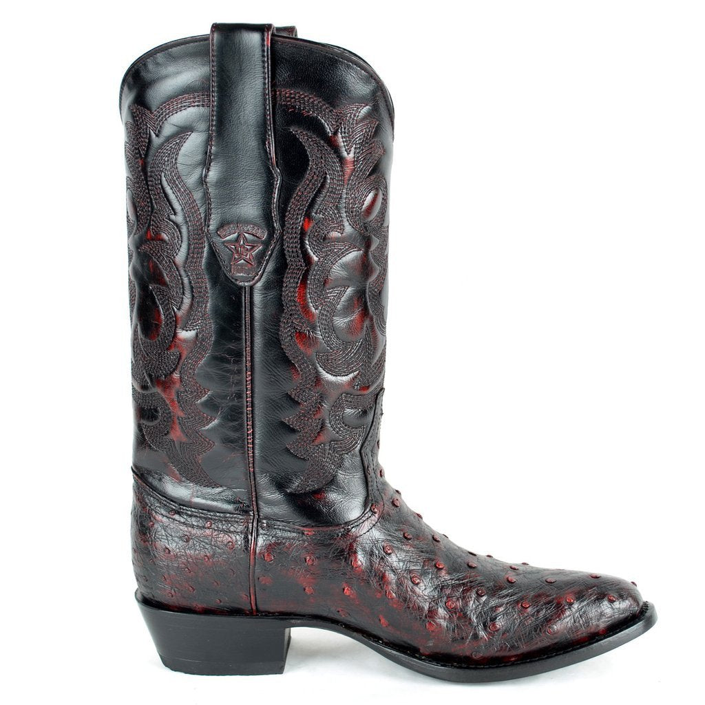 Los Altos Genuine Ostrich Semi Oval Boot in Black Cherry