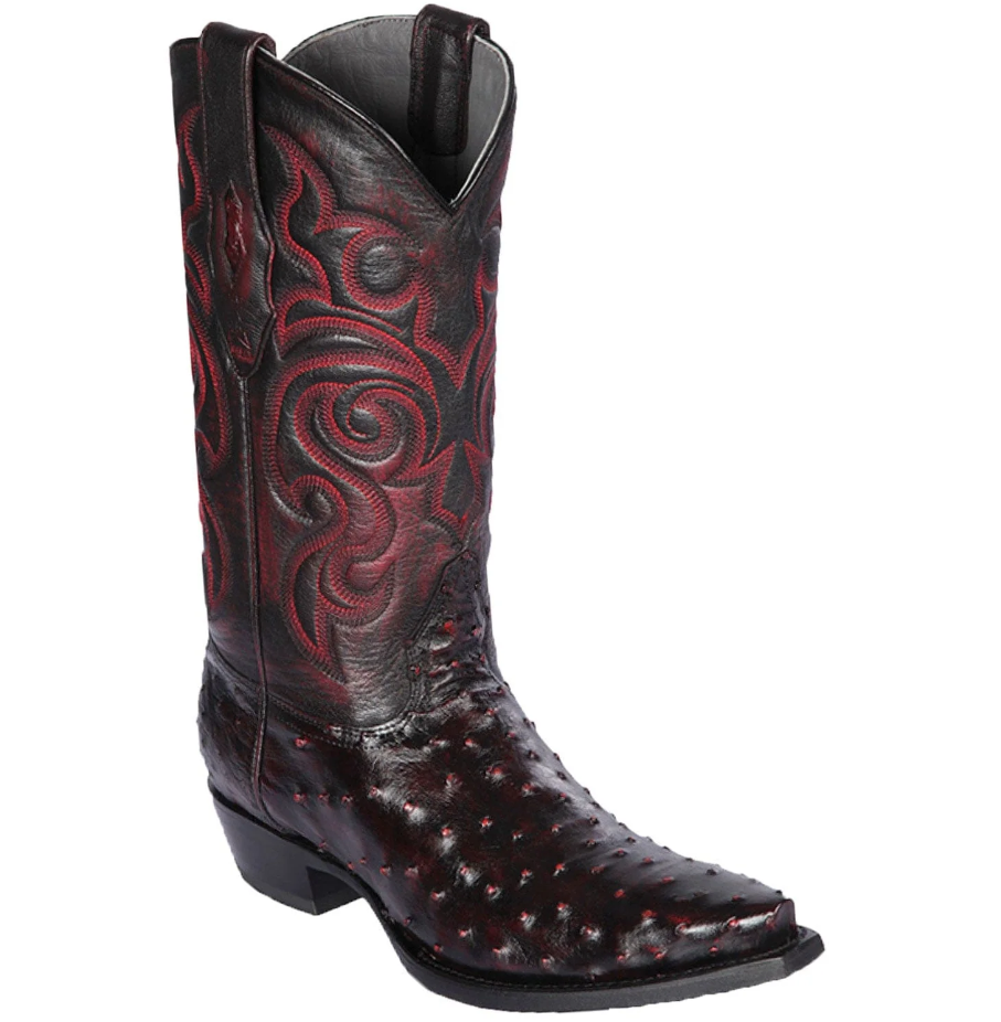 Los Altos Genuine Ostrich Snip Toe Boot in Black Cherry
