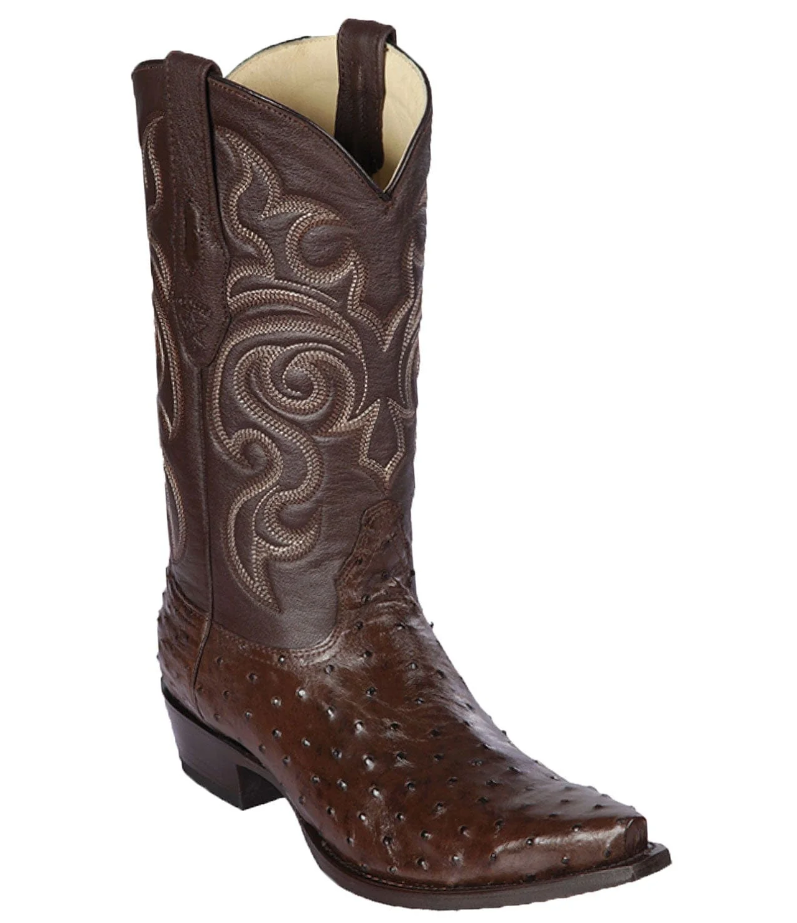 Los Altos Genuine Ostrich Snip Toe Boot in Brown