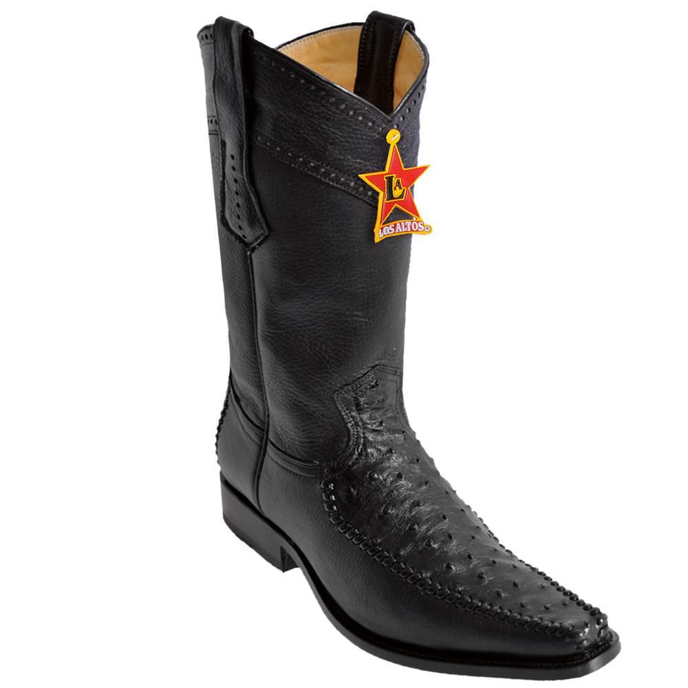Los Altos Genuine Ostrich Stitched Narrow Square Toe Boot in Black