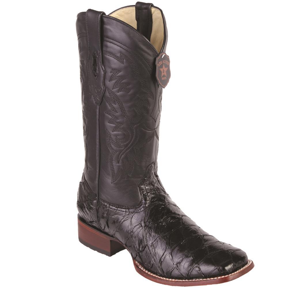 Los Altos Genuine Pirarucu Wide Square Toe Boot in Black