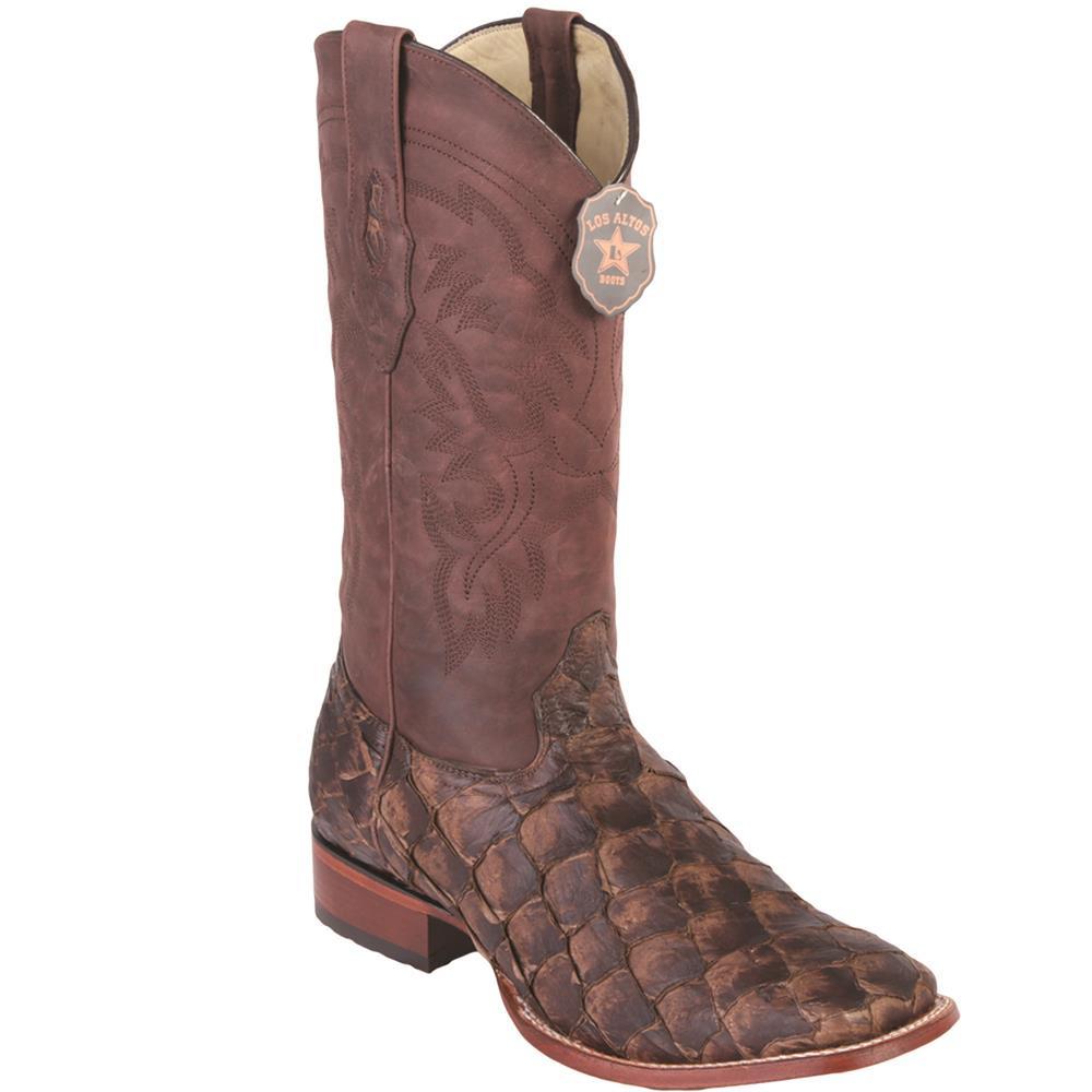 Los Altos Genuine Pirarucu Wide Square Toe Boot in Matte Cacao