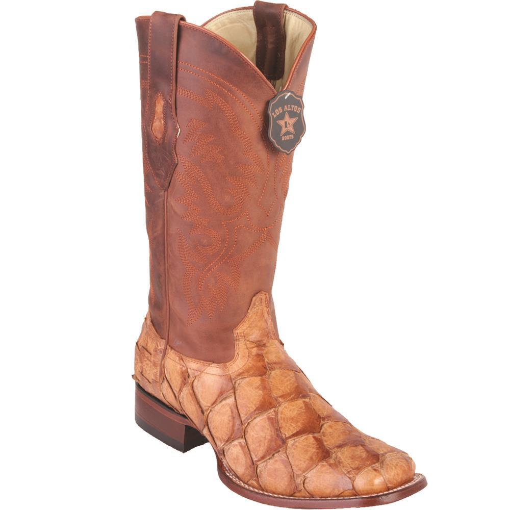 Los Altos Genuine Pirarucu Wide Square Toe Boot in Matte Cognac