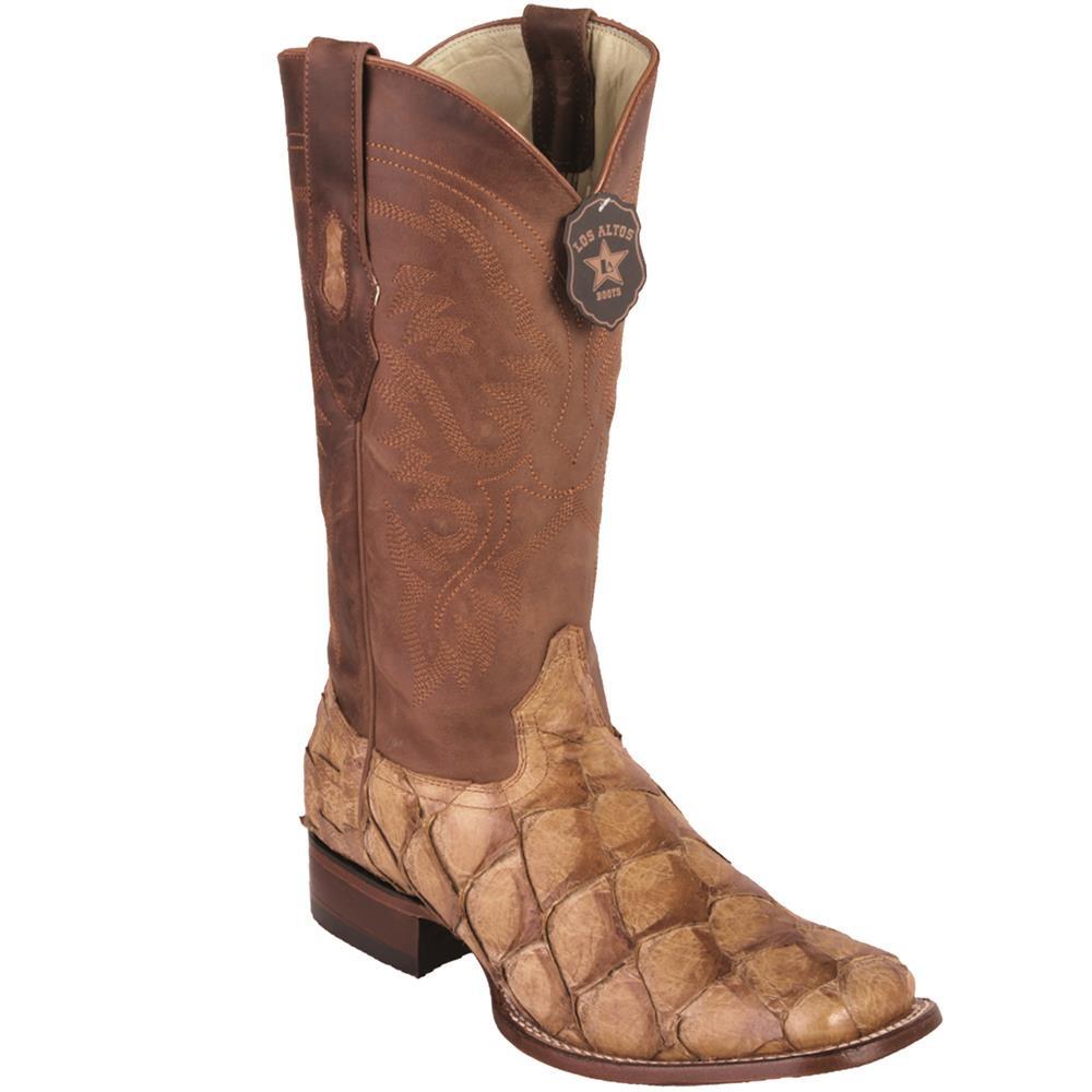 Los Altos Genuine Pirarucu Wide Square Toe Boot in Oryx