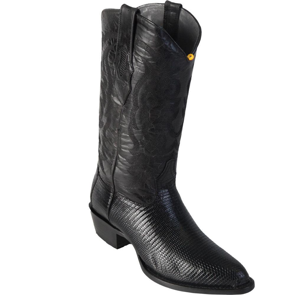 Los Altos Genuine Ring Lizard Semi Oval Boot in Black