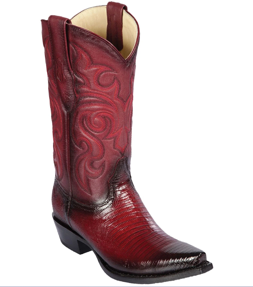 Los Altos Genuine Teju Lizard Snip Toe Boot in Burnished Burgandy
