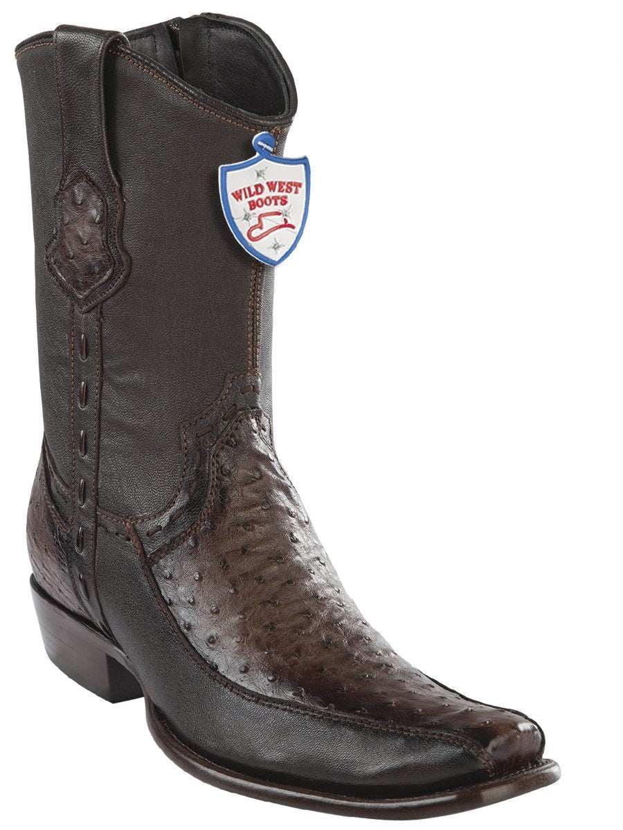 Genuine Ostrich Stitched Ankle Boot in Faded Brown